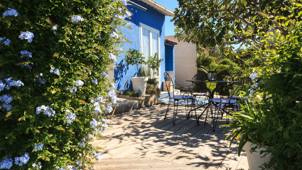 C’est une maison bleue adossée à la colline, au cœur du domaine d’Héliopolis, berceau du naturisme, un lieu idéal pour un séjour de rêve. Vous séjournerez dans un appartement indépendant confortable, personnalisé et convivial donnant sur une terrasse panoramique aménagée pour la détente et le bien être. Bienvenue sur notre île magique