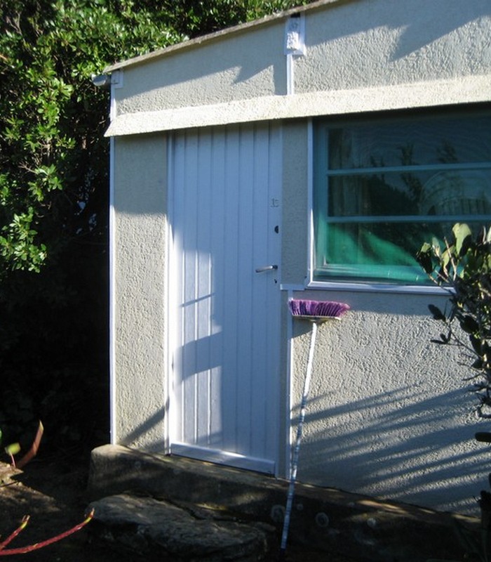 Bungalow fonctionnel proposé par l'Eden, équipé, comprenant un coin cuisine, doté du nécessaire pour prendre vos repas, ainsi que le mobilier et la literie.