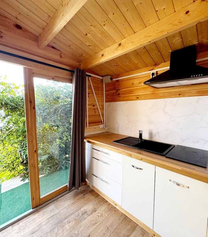 Nos bungalows panoramiques plein Sud profitent d’un ensoleillement optimal toute l’année. Chaque hébergement dispose d’une cuisine équipée (plaques vitrocéramique ou induction, four, micro-ondes, grille-pain, cafetière), d’un lit spacieux (160 cm), d’une salle d’eau avec douche et WC, et d’une terrasse privative face à la mer.