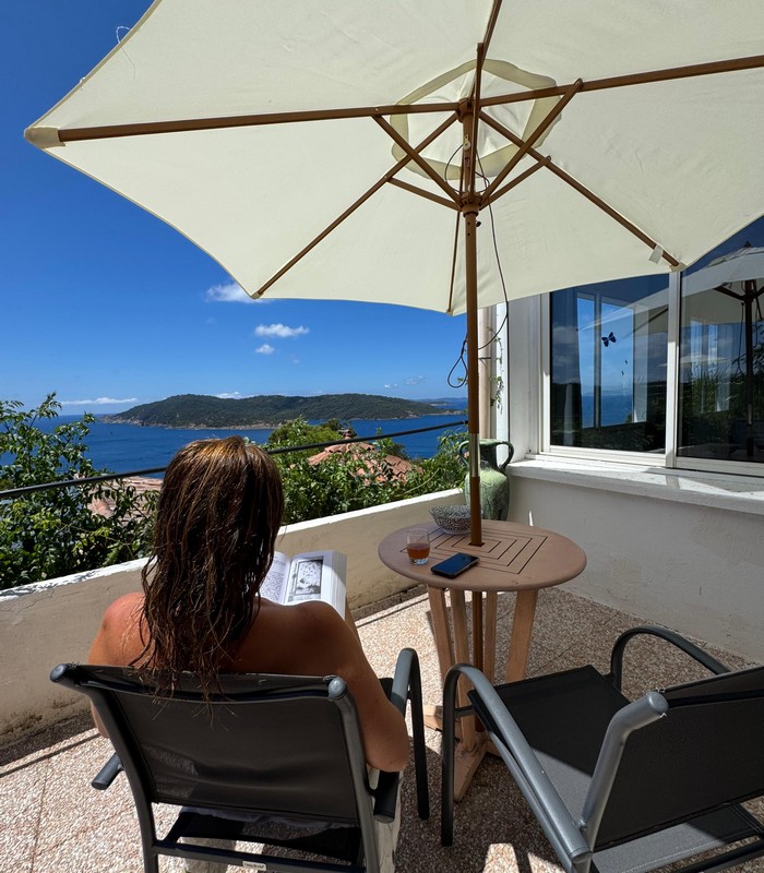 Depuis votre location, la vue s’étend sur Port-Cros et Porquerolles. La grande terrasse commune et les espaces privatifs créent un équilibre entre moments partagés et intimité préservée. Le wifi gratuit dans toutes les locations vous permet de rester connecté si vous le souhaitez.