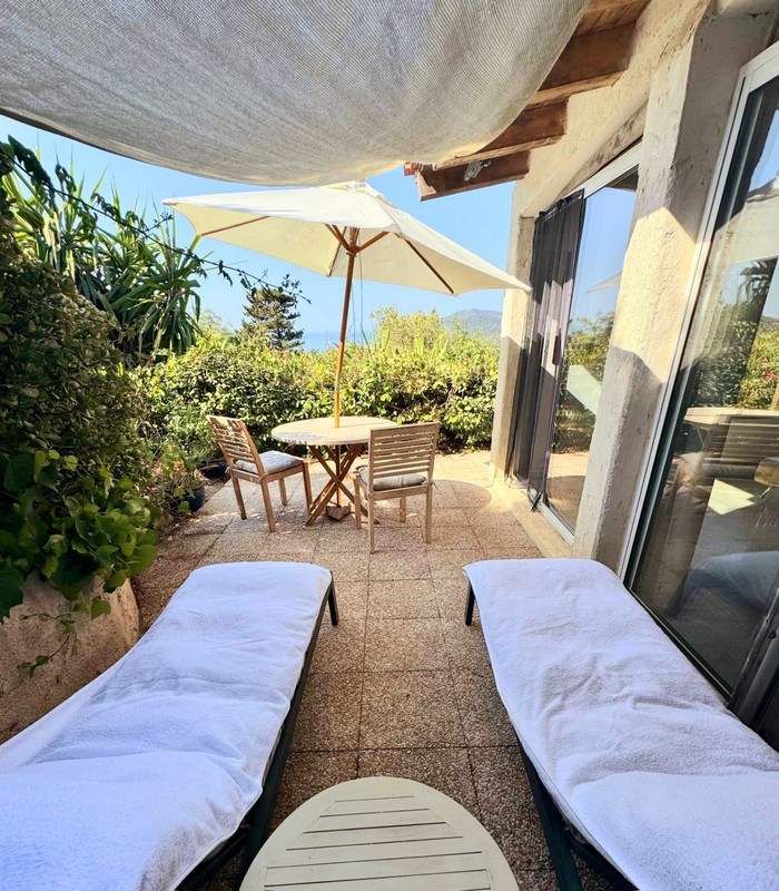 - Terrasse avec vue imprenable sur la mer .