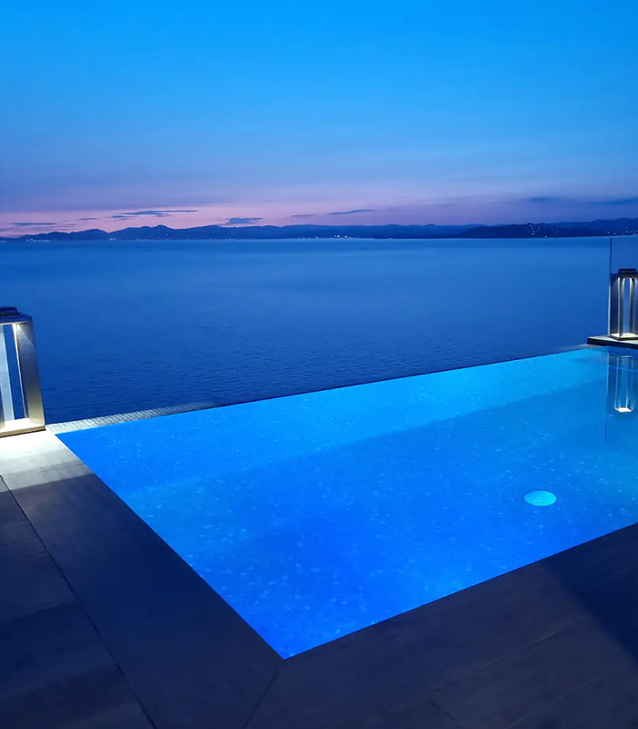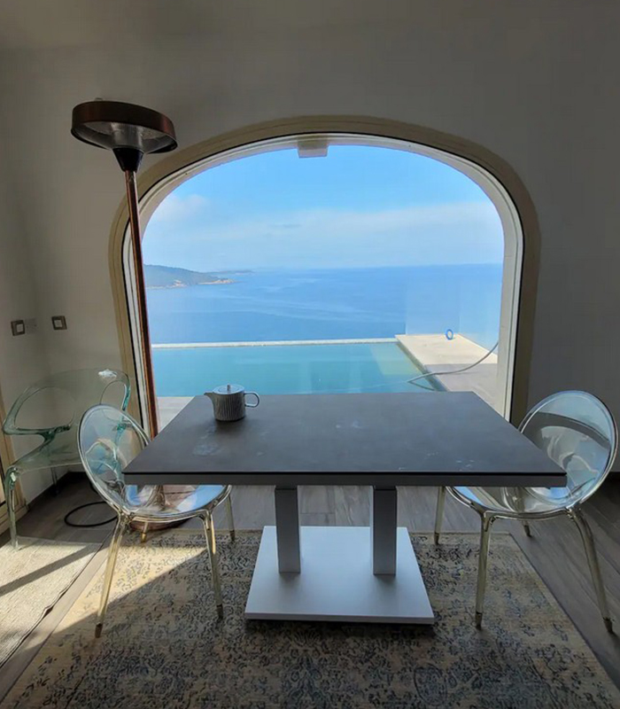 La Villa Héliade propose quatre chambres pensées pour les couples en quête d’un séjour intime face à la Méditerranée. Chaque suite indépendante ouvre sur un panorama maritime qui accompagne les moments de détente, qu’ils se déroulent sur la terrasse, près de la piscine à débordement ou dans le jacuzzi commun.