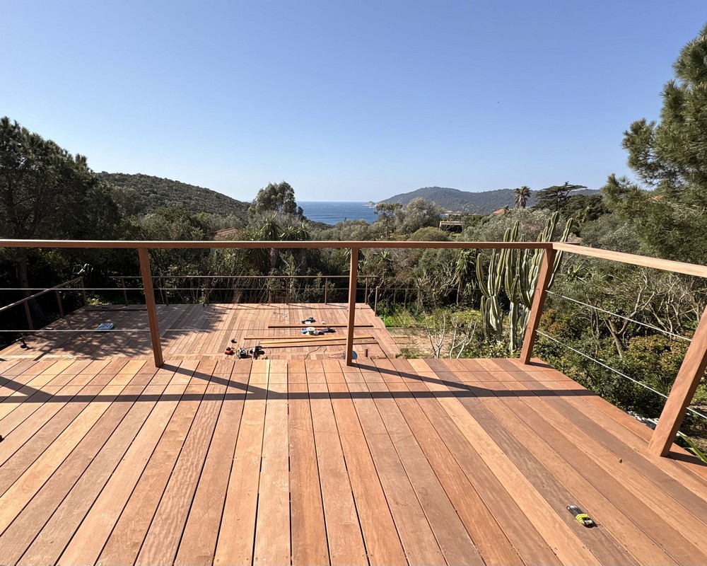 Villa Les Pins : locations de 2 chambres avec cuisine extérieure donnant sur une terrasse avec une très belle vu sur Port Cros et l’îlot de la Gabiniere