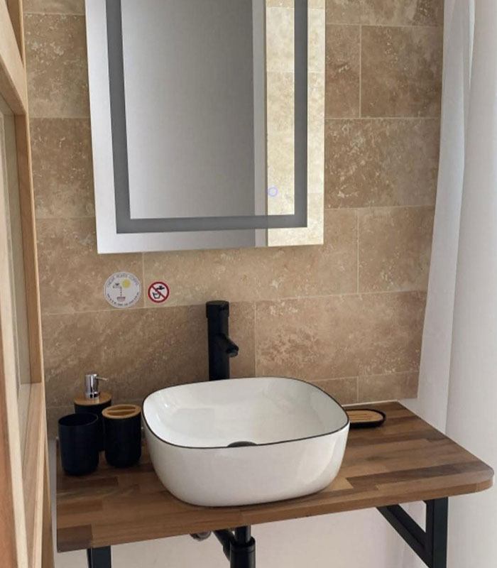 Il dispose d’un lit confortable, d’une kitchenette équipée (plaque de cuisson, micro-ondes, réfrigérateur, bouilloire, vaisselle), d’une salle d’eau moderne avec lavabo et douche, ainsi que de toilettes séparées.