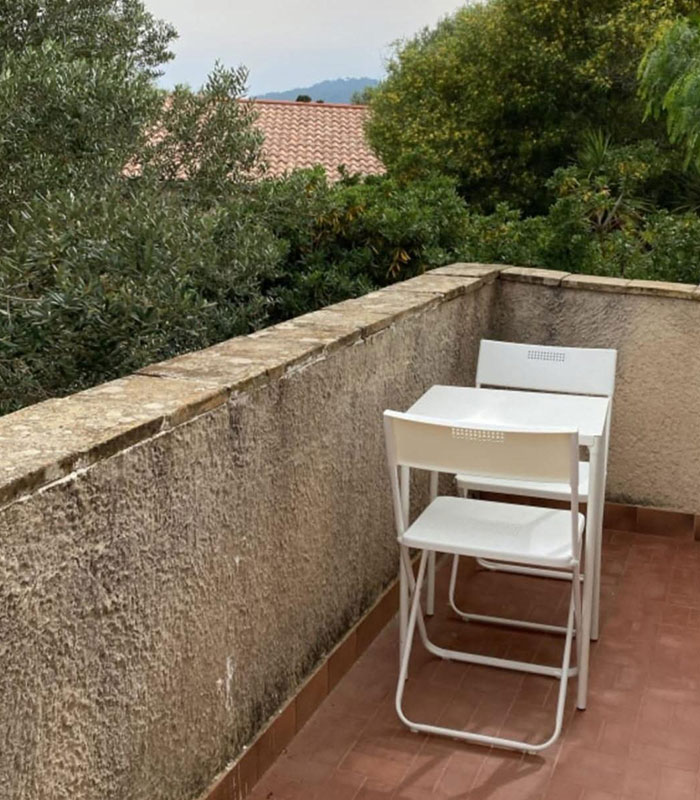 Le studio possède une petite terrasse privative permettant de prendre les repas ou de profiter du calme et de la nature environnante.