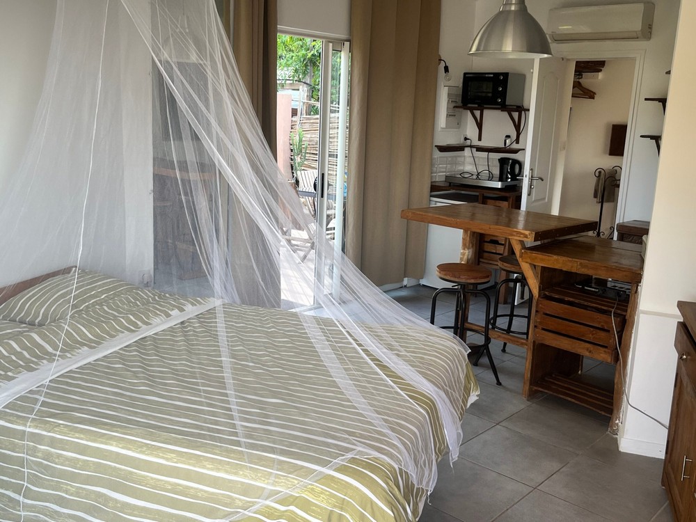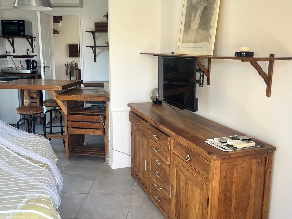 - Studio pour 2 pers (22 m²) : À louer à la semaine en juillet et août (possibilité court séjour en mai juin et septembre). Joli studio avec tout équipé: lit double, télé, cafetière Nespresso, sèche-cheveux, clim, terrasse privée, transat, piscine collective.