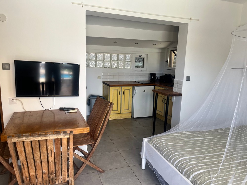 - Studio pour 3 pers (20 m²) : À louer joli studio, trois couchages tout équipé, télé, cafetière Nespresso, clim, plaque de cuisson four, micro-ondes, terrasse privée, piscine collective, transat