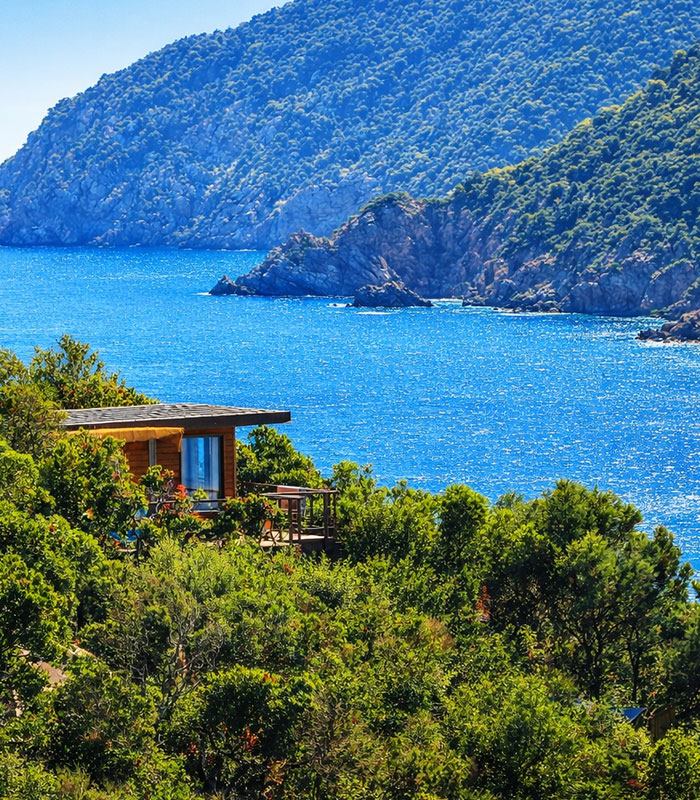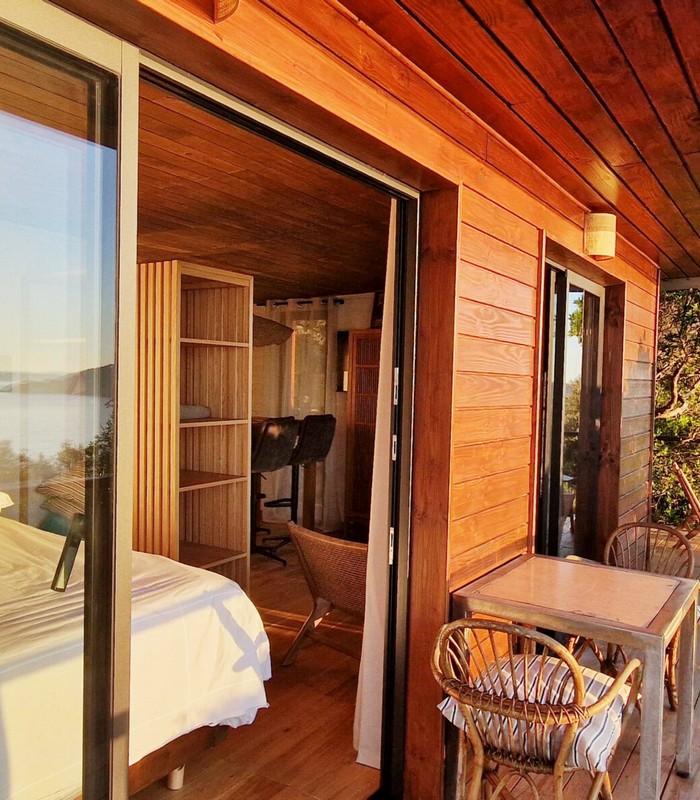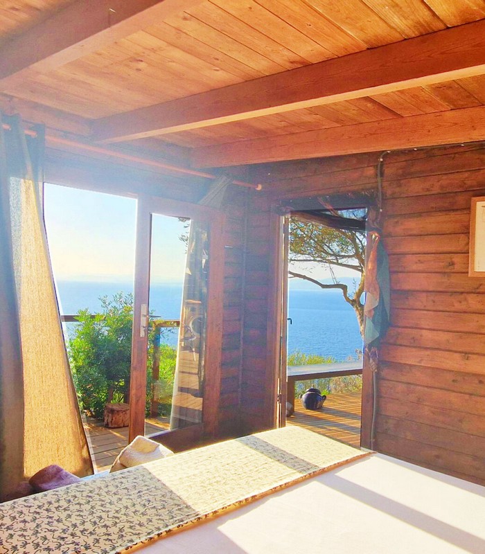 Lodge isolé de 24 m² sur les rochers face à la mer avec un vue panoramique à 180°.