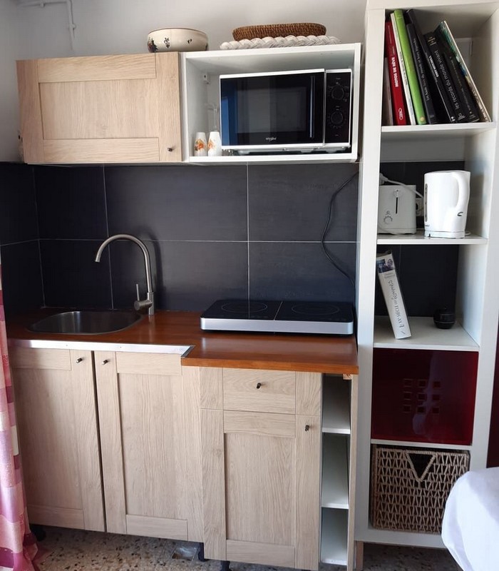 Installés sur une large terrasse dominant la mer, les Studios 22 et 29 offrent un hébergement soigné et fonctionnel pour deux voyageurs en quête d’un lieu agréable sur l’île du Levant. Chaque studio dispose d’une kitchenette équipée, d’un lit confortable en 140 cm et d’une salle d’eau moderne avec douche.