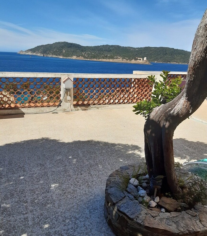Le Studio 22 se situe au centre de la terrasse, tandis que le Studio 29 occupe l’extrémité gauche, profitant d’une zone plus vaste pour son espace extérieur. Tous deux sont accessibles par quelques marches depuis la corniche et permettent de profiter facilement des chemins, du port ou du village.