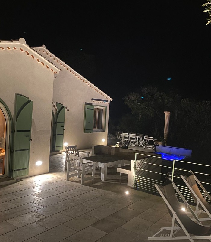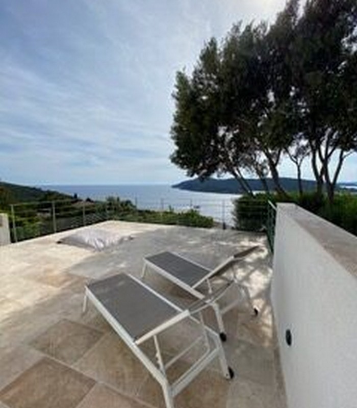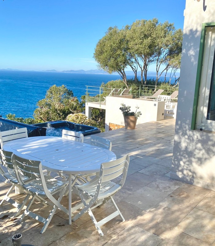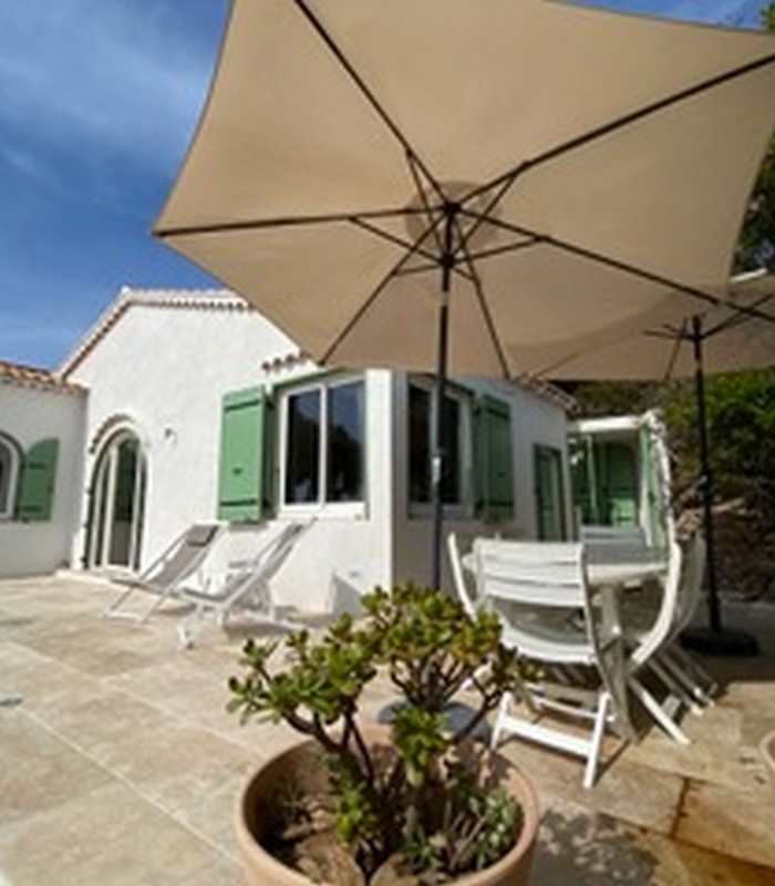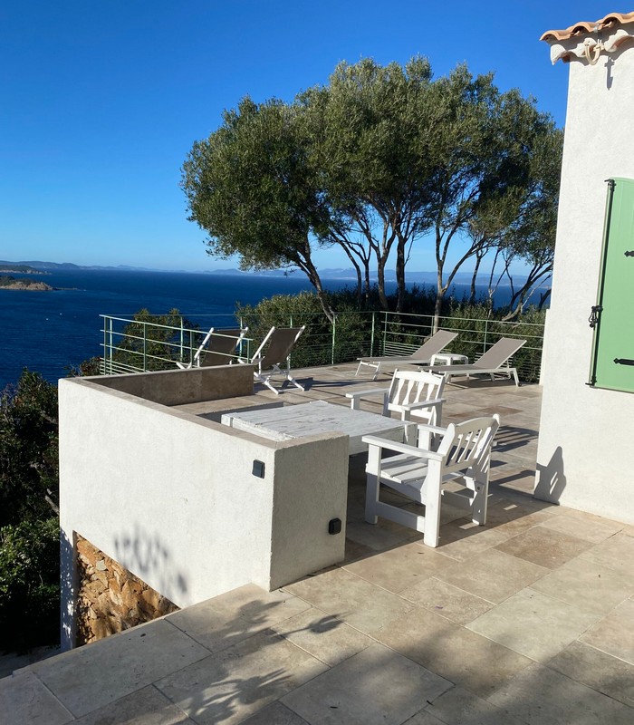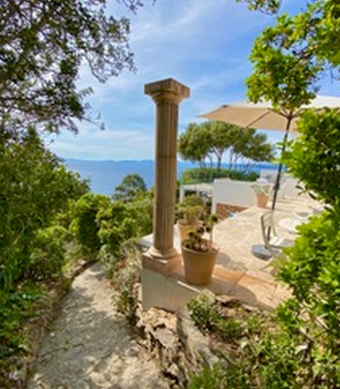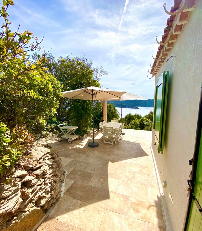 À mi-chemin entre la mer et la place du village, cette maison familiale de vacances est typique de l’esprit de l’île du Levant avec ses grandes fenêtres cintrées, sa simplicité, son charme et sa vue panoramique magistrale.