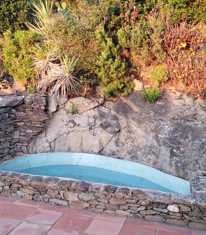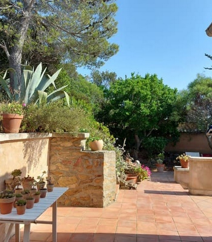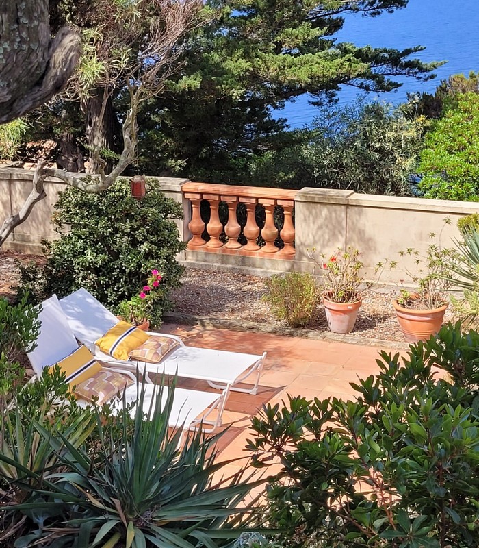 Immergée au milieu de la végétation, la maison est entourée d’un grand jardin planté d’essences méditerranéennes et traversé par de nombreux passages et chemins. 2 grandes terrasses et un balcon panoramique, équipés de transats, de tables et de chaises de jardin offrent de multiples possibilités pour des moments en extérieur inoubliables.
