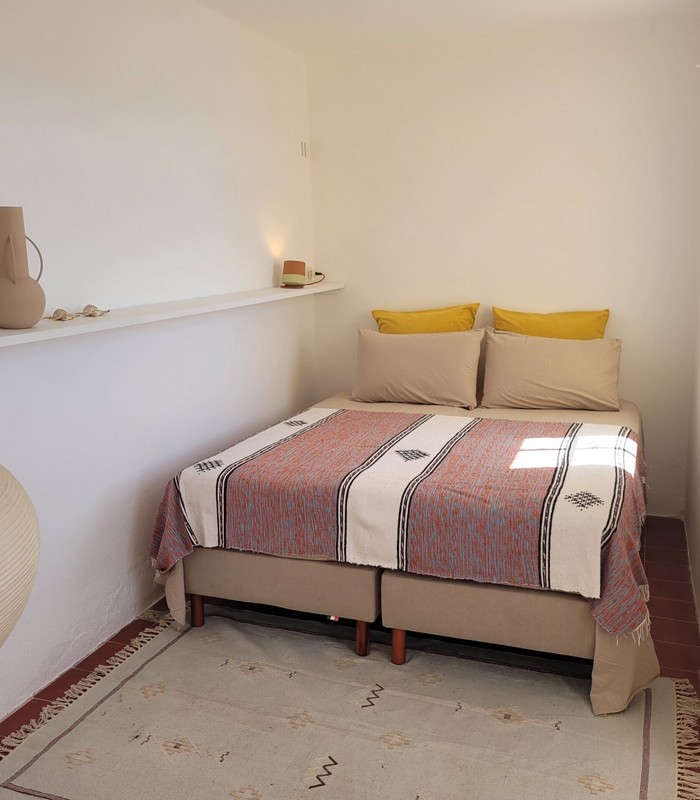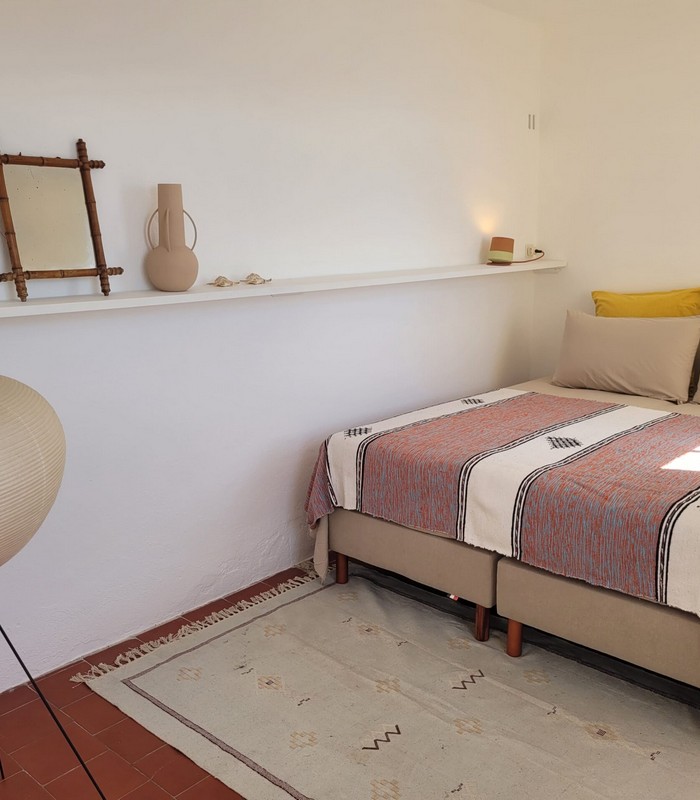 Bâtie sur deux niveaux, elle dispose d’une grande pièce à vivre avec sa baie vitrée panoramique donnant sur le golfe d’Hyères et son coin nuit équipé d’un lit queen size, d’un balcon orienté pleine mer, d’une cuisine indépendante, d’une salle d’eau, de wc séparés et d’un vestibule. Au niveau inférieur, se trouve la chambre équipée d’un second lit en queen size et de rangements. La literie neuve (achetée en juin 2022) de qualité hôtelière est composée de 2 lits de 160 séparables en lits de 80.