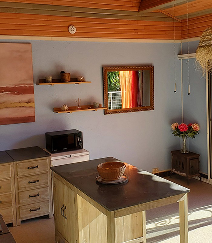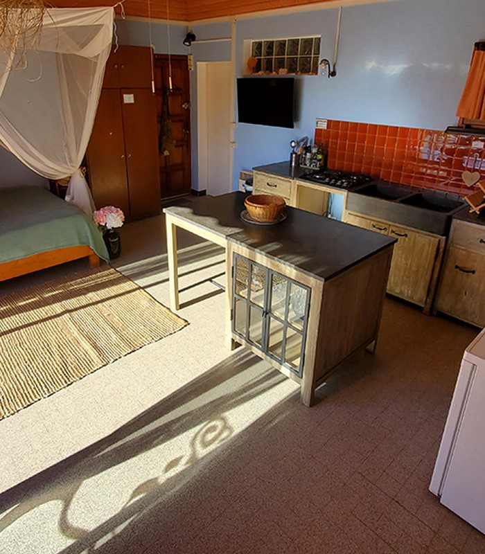 C’est un havre de paix comportant un séjour qui donne sur une grande terrasse pour profiter de la vue. La sauterelle est constituée d’une grande pièce principale avec un coin cuisine, un séjour et un coin couchage ainsi qu’une salle de bains avec douche et toilettes.