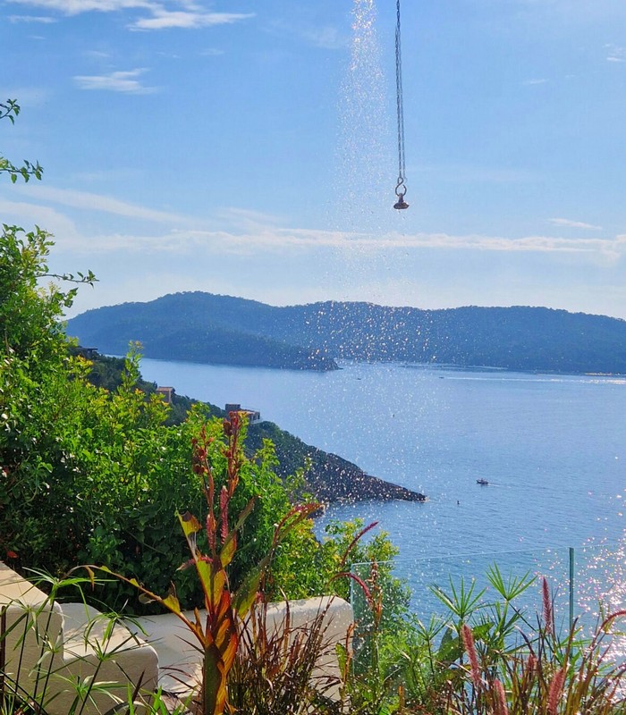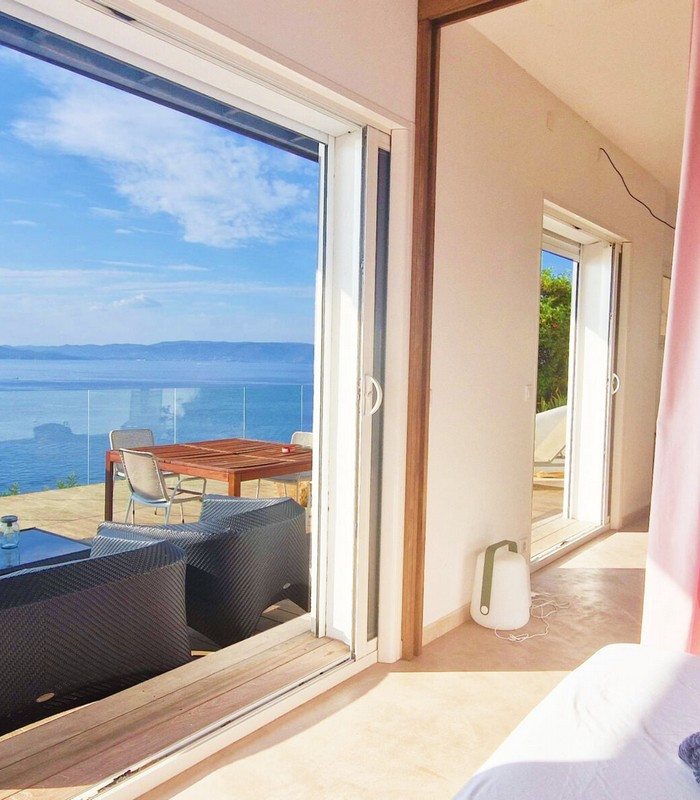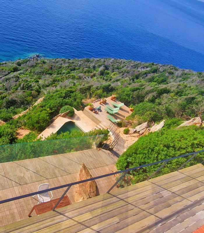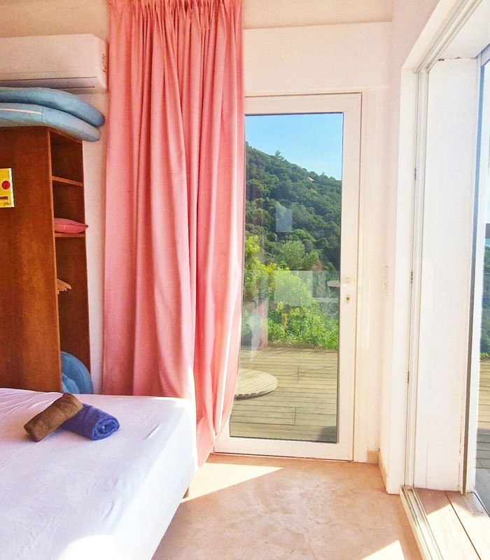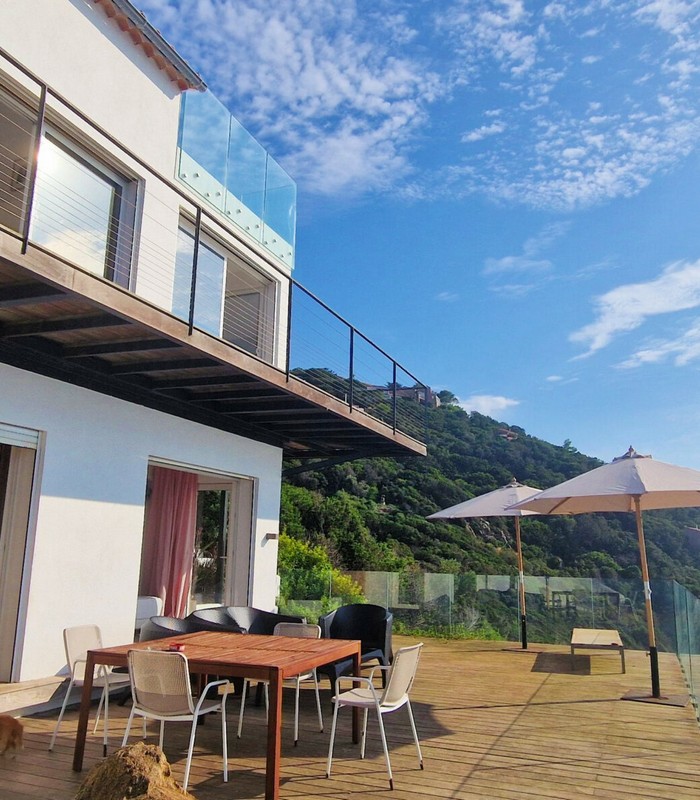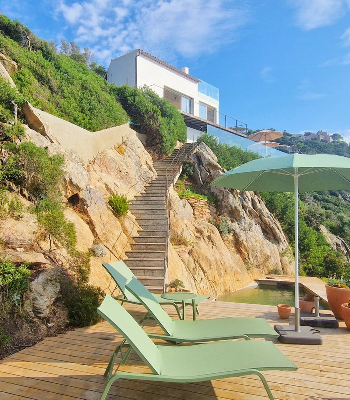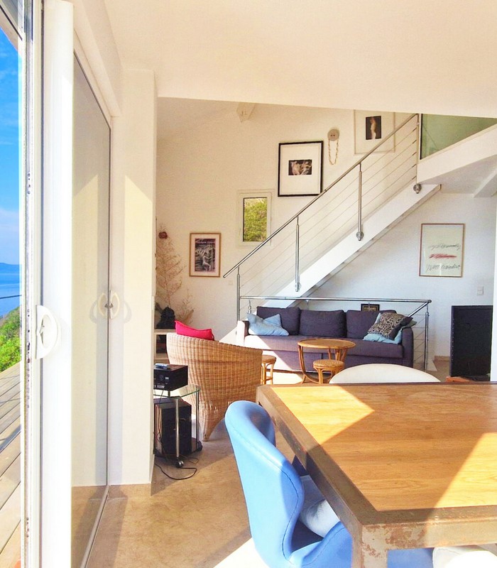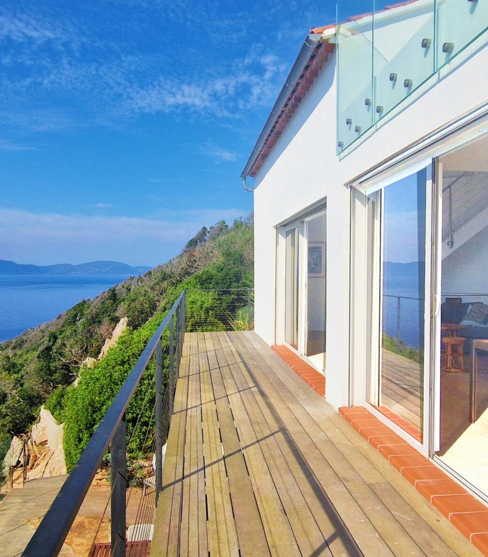 La villa Vertigo est une maison indépendante, sans vis-à-vis, sur trois niveaux, en balcon sur la mer. Son terrain sauvage couvert de maquis borde la Méditerranée. Elle peut accueillir jusqu’à 6 personnes.