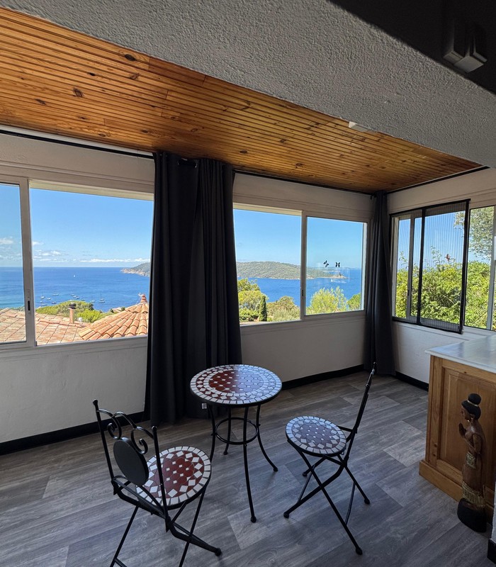 – Séjour, vue superbe sur la mer et Port-Cros.