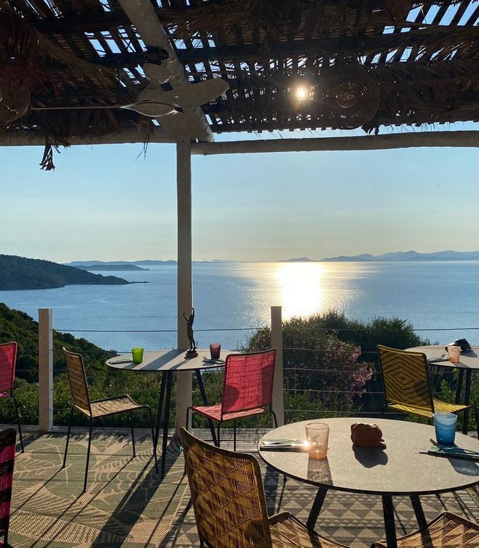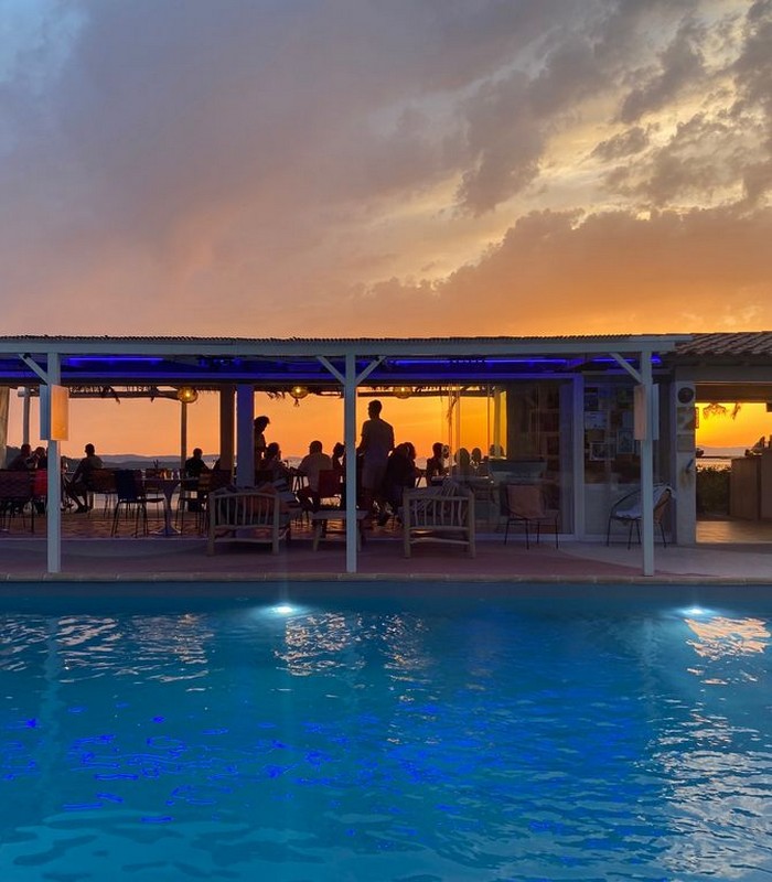 Hôtel naturiste et familial, 3 étoiles, situé sur les hauteurs du Domaine Heliopolis avec une vue unique sur les îles et le continent, au calme à 2 minutes de la place du village et à 10 minutes de la mer. Vous trouverez également un restaurant avec terrasse panoramique et une petite boutique de tenues levantines et souvenirs.