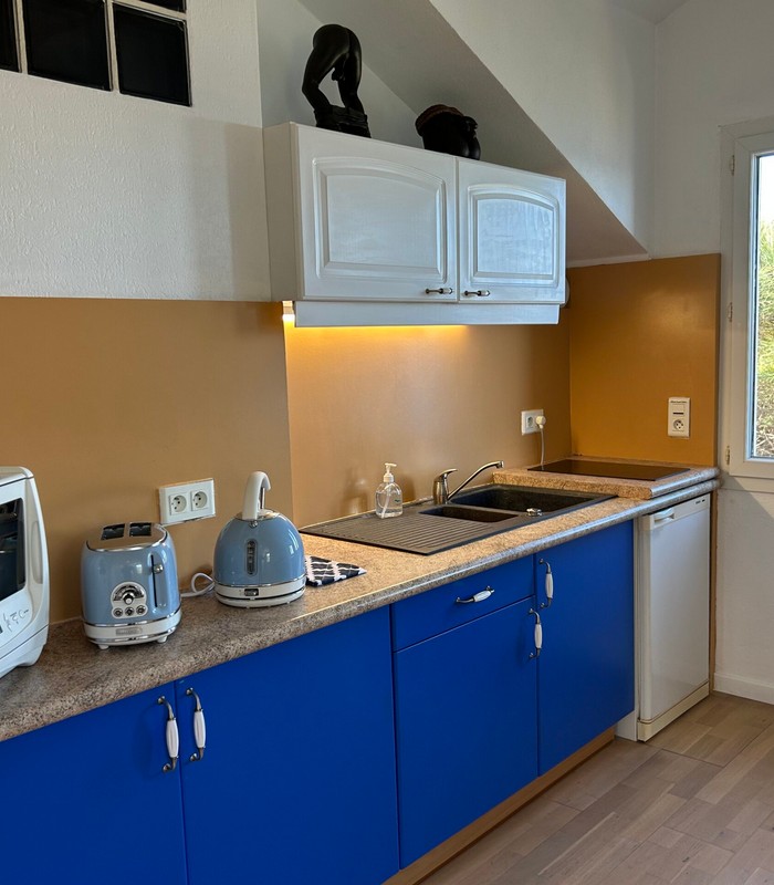 Les cinq studios personnalisés de 22 m² (Jean Cocteau, Jean Marais, la Belle et la Bête, Les Enfants Terribles, Montargis) accueillent 1 à 2 personnes avec lit en 160 cm, cuisine équipée avec four Crisp, douche-WC, chauffage, coffre-fort, ventilateur tropical et Wi-Fi. Chaque studio dispose d'une terrasse ou d'un balcon avec vue sur la mer et les îles.