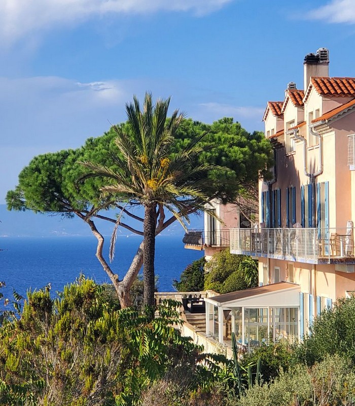 - La position de la villa offre une perspective exceptionnelle sur la Méditerranée, embrassant Port-Cros, Porquerolles, le Fort de Brégançon et le massif des Maures, permettant d'admirer les couchers de soleil sur les îles d'Hyères.